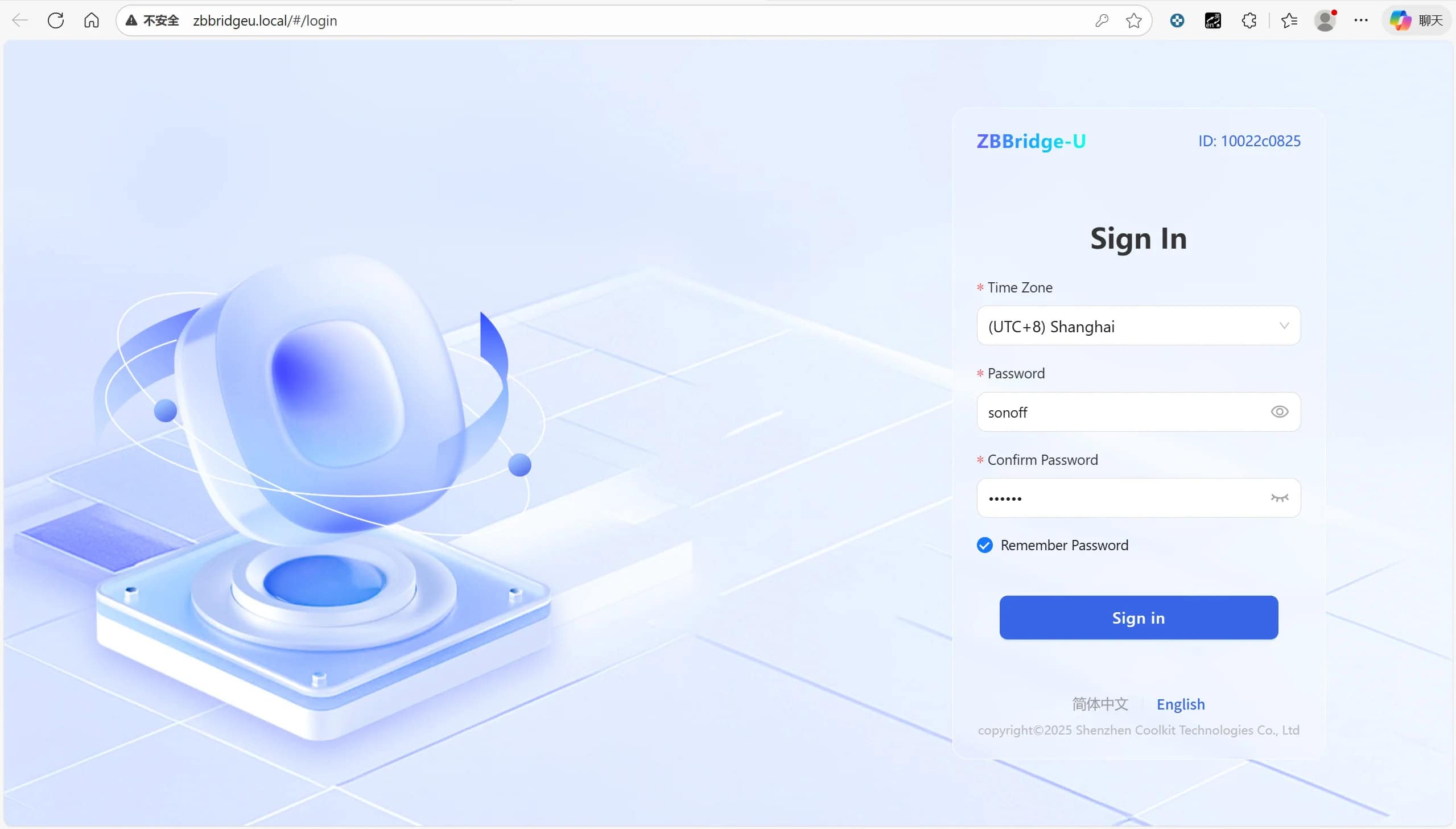 При първото влизане в интерфейса ще бъдете насочени да зададете часовата зона и да създадете парола за бъдещи влизания.
