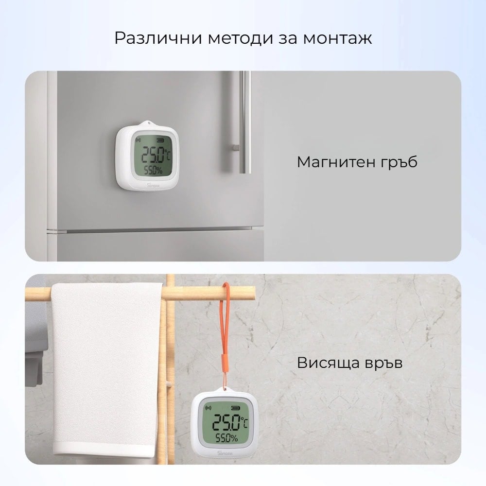 SONOFF SNZB-02WD обновява измерванията на температурата и влажността на всеки 5 секунди, което осигурява актуална информация в реално време. Това позволява по-прецизно наблюдение на промените в средата и по-надеждни автоматизации, базирани на текущите стойности.