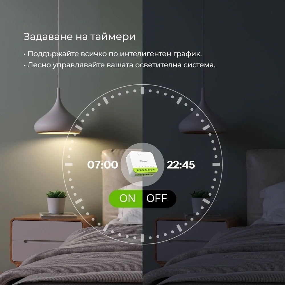 Позволява създаване на интелигентни сцени и автоматизации според вашия начин на живот. Устройството може да се активира при засичане на движение, по график, при определен час или в комбинация с други смарт устройства. Това дава възможност за напълно автоматизирано управление на осветлението и уредите. Улеснява ежедневието и повишава комфорта в дома.