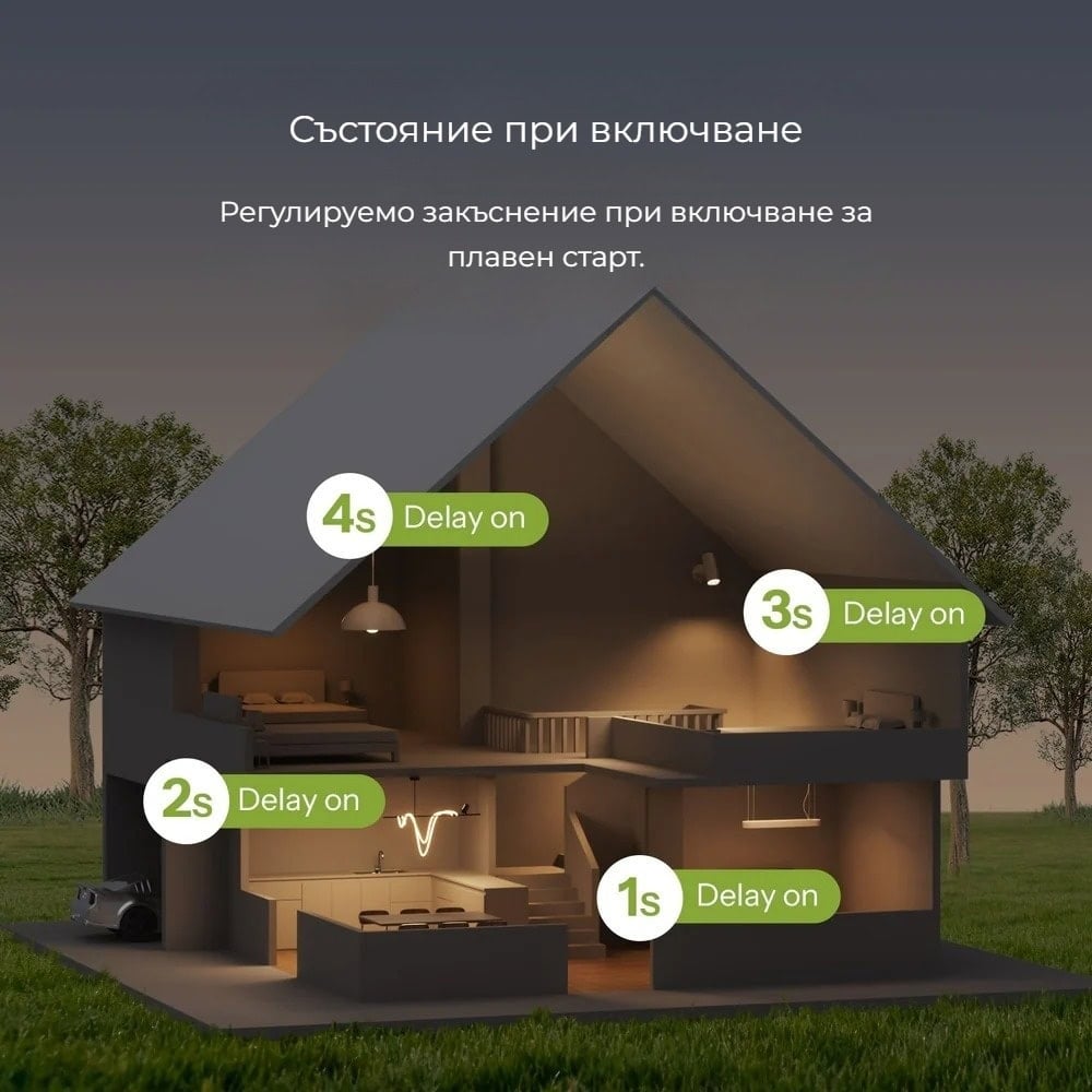 Позволява да изберете как да се държи устройството при подаване или възстановяване на захранването. Можете да зададете автоматично включване, изключване или запазване на последното състояние преди спиране на тока. Това осигурява по-голяма сигурност и предвидимост при прекъсвания на електрозахранването. Функцията е особено полезна за осветление, технически помещения или уреди с определен режим на работа.