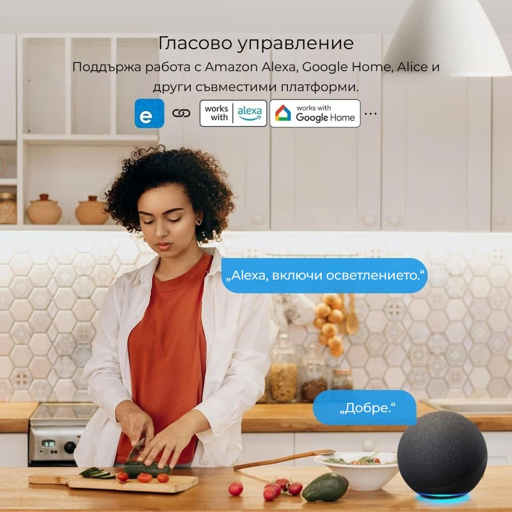 SONOFF SwitchMan ZBM5-86 поддържа гласово управление чрез съвместими гласови асистенти, което позволява включване и изключване на осветлението без физически контакт с ключа. Достатъчна е проста гласова команда, за да управлявате осветлението бързо и удобно. Това прави устройството особено практично в ежедневието, когато ръцете са заети или когато искате максимален комфорт в дома.